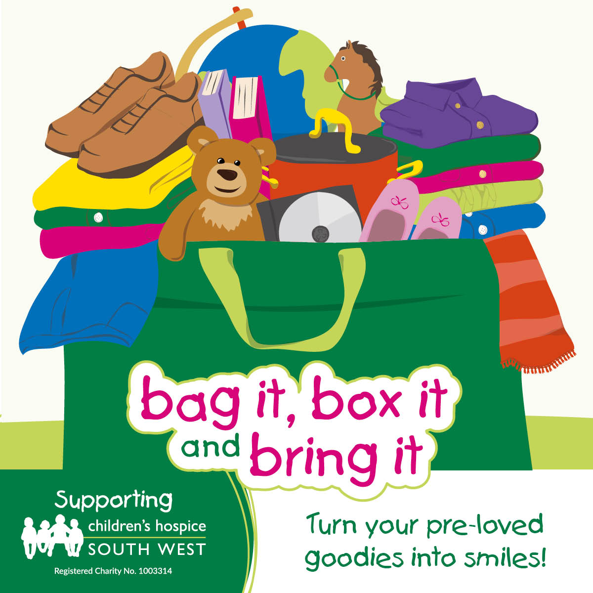 Children’s Hospice South West shops will turn your donations into funds to support and care for babies, children and young people living with life-limiting conditions and their families.