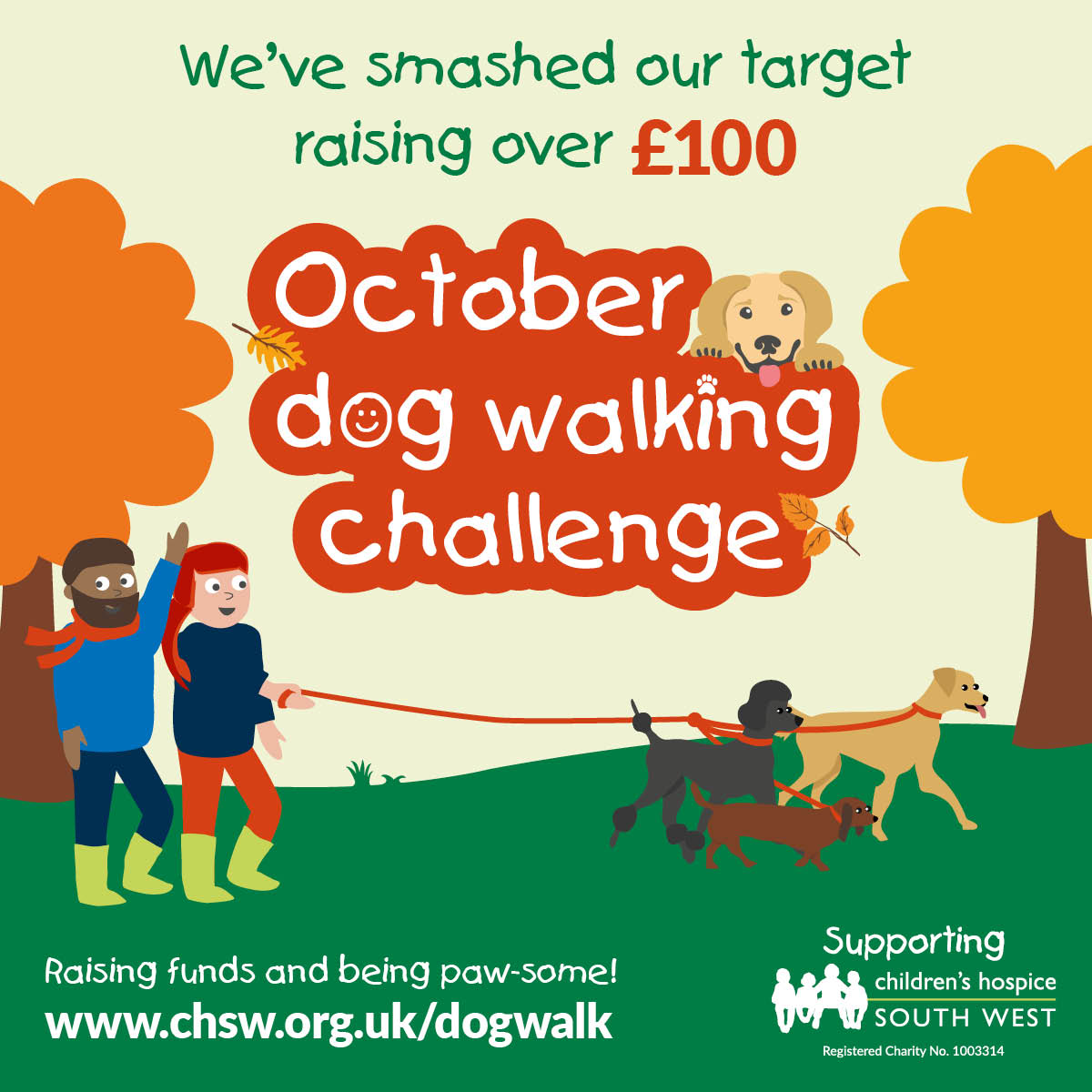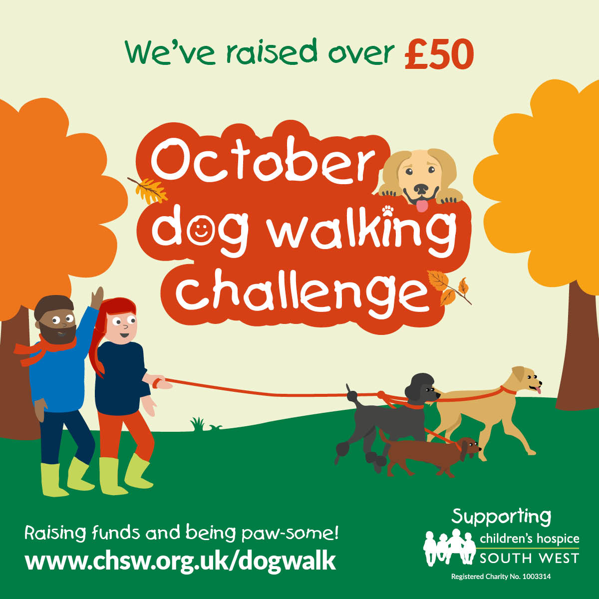 - You will be automatically entered into the prize draw when you successfully register for the October Dog Walking Challenge 2025. You will receive an additional entry for raising £50 sponsorship. You will subsequently receive an additional entry for raising £100, £150 and £200 sponsorship in connection to October Dog Walking Challenge 2025
