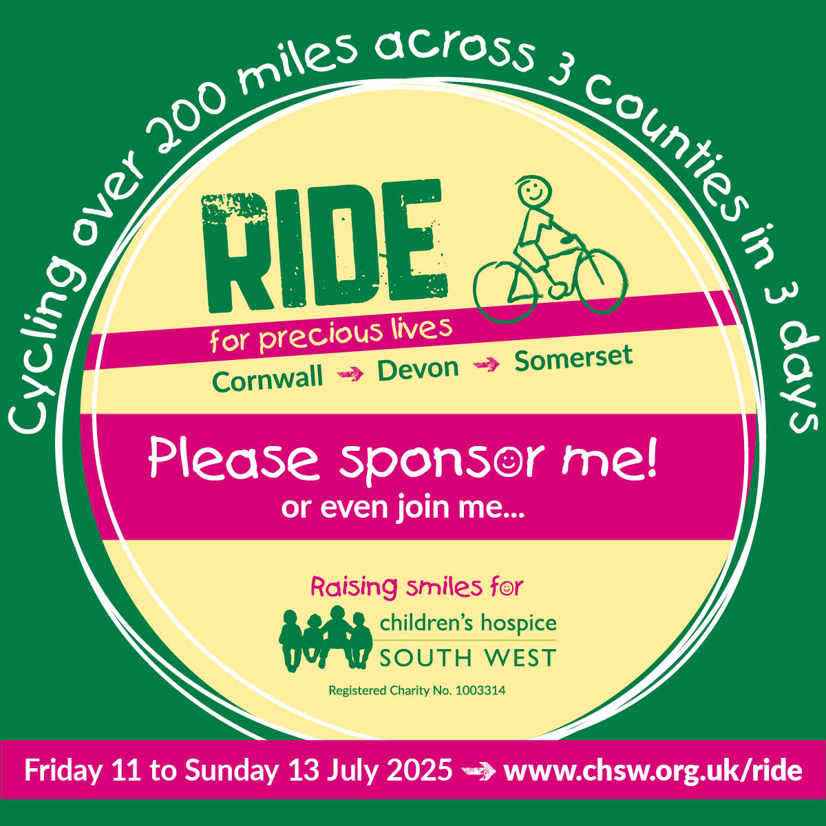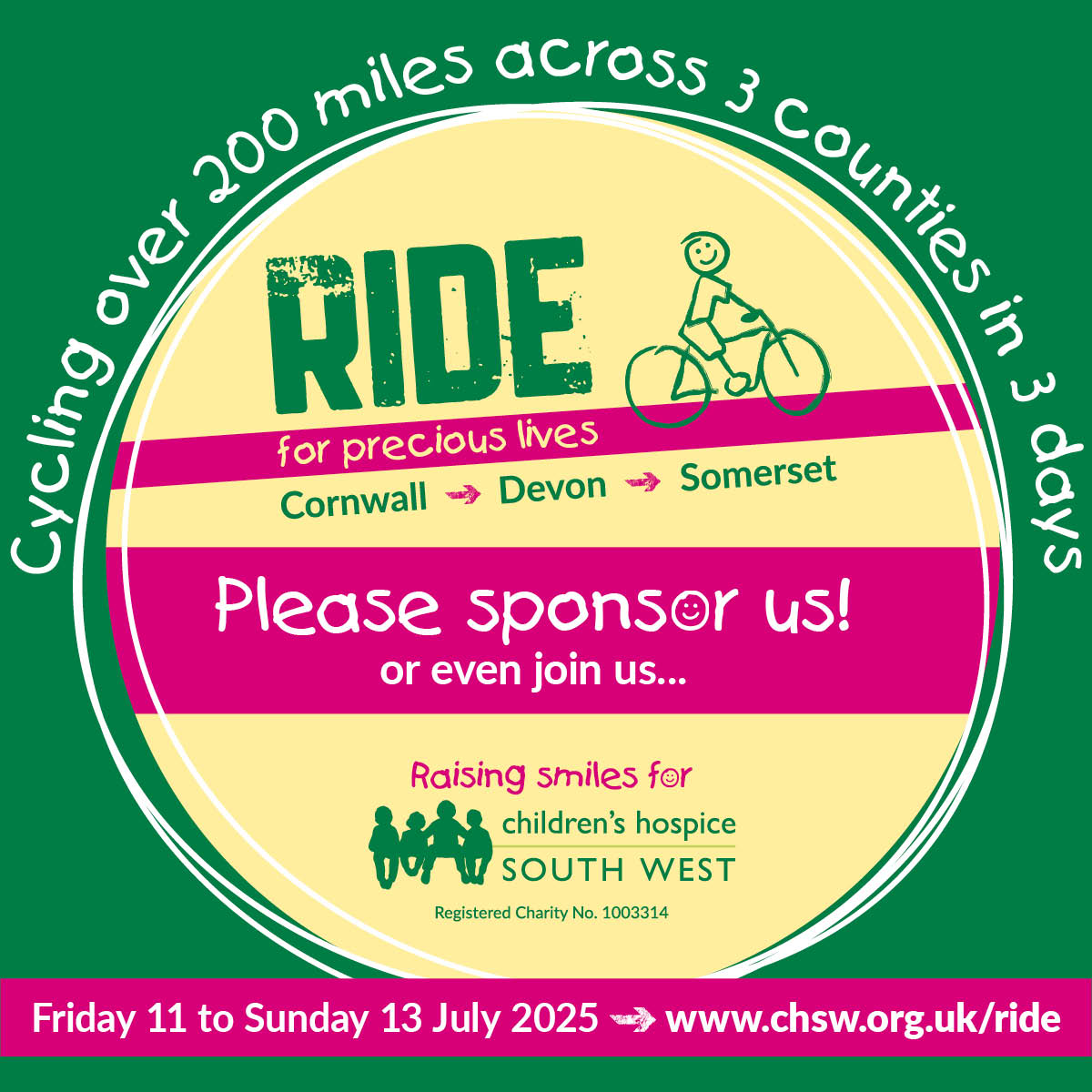 Together, Team Ride will raise awareness and vital funds for babies, children and young people living with life-limiting conditions and their families across the South West.