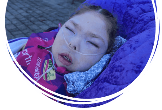 Ophelia can’t walk so uses a wheelchair, can’t talk, and can’t feed herself so has a gastrostomy. She still has seizures and has urine issues, so is catheterised.